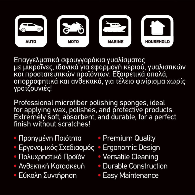 Profesjonalne gąbki polerskie z mikrofibry Feral Detailing Pro to doskonałe narzędzie do aplikacji środków czyszczących, wosków, preparatów ochronnych i polerskich. Wykonane z niezwykle miękkiej pianki pokrytej mikrofibrą, zapewniają bezpieczeństwo wszystkich powierzchni – w tym skóry i plastiku. Można je prać i wielokrotnie używać, zachowując ich wysoką trwałość.