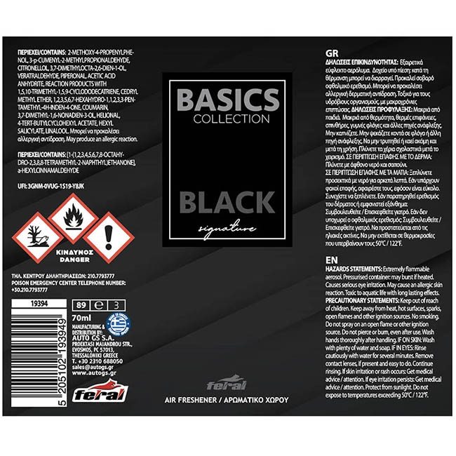 FERAL Zapach Basic Collection Black Signatur 70ml – praktyczne akcesorium samochodowe. Ochrona przed słońcem i promieniami UV. Feral.