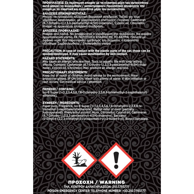 Zapach Black Oud z kolekcji Royal to propozycja dla osób, które chcą poczuć się jak król, nawet podczas codziennej jazdy samochodem. Kolekcja Royal inspirowana jest aromatami Bliskiego Wschodu i zawiera nuty róży, jaśminu, szafranu, kuminu, drewna gwajakowego, bursztynu oraz ambry zwierzęcej (amimalic). Zawieś odświeżacz w samochodzie i ciesz się luksusową podróżą każdego dnia.