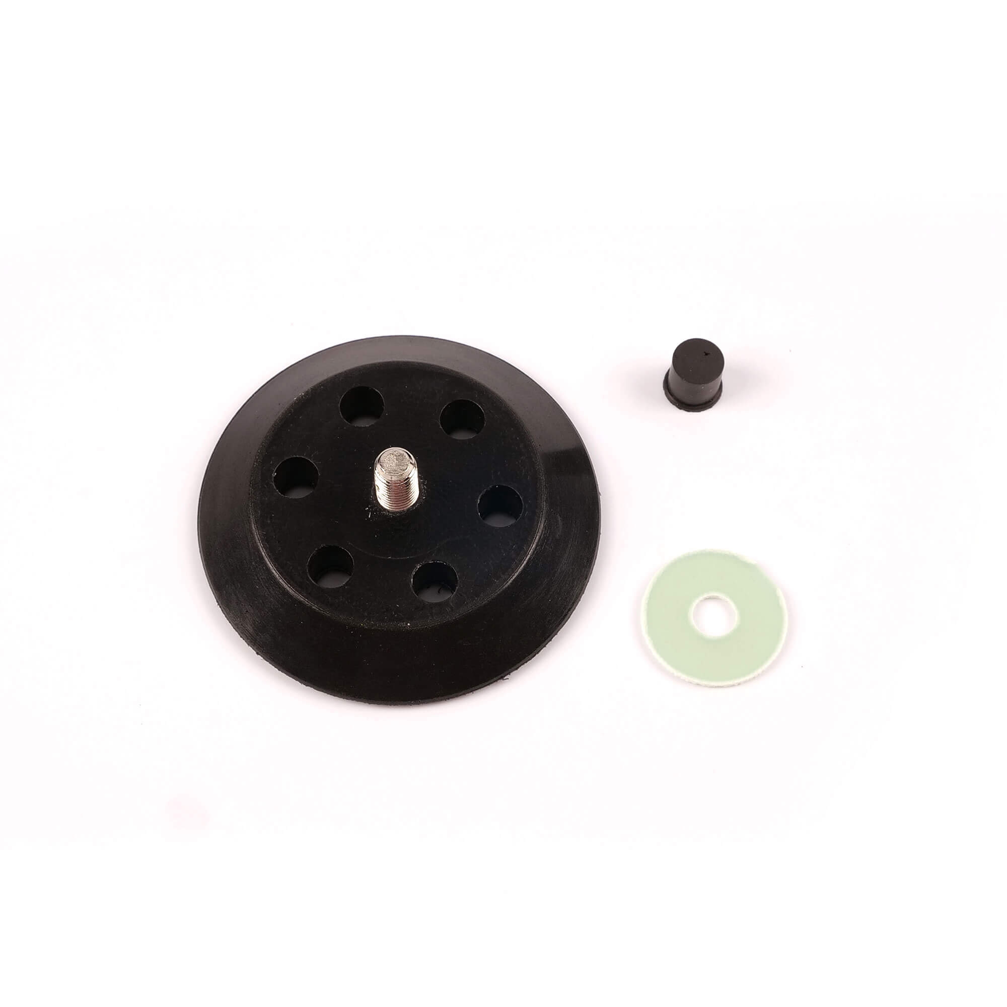 Materiał typu hook & loop pewnie mocuje pady wszystkich typów, zapewniając ich centralne i stabilne osadzenie.