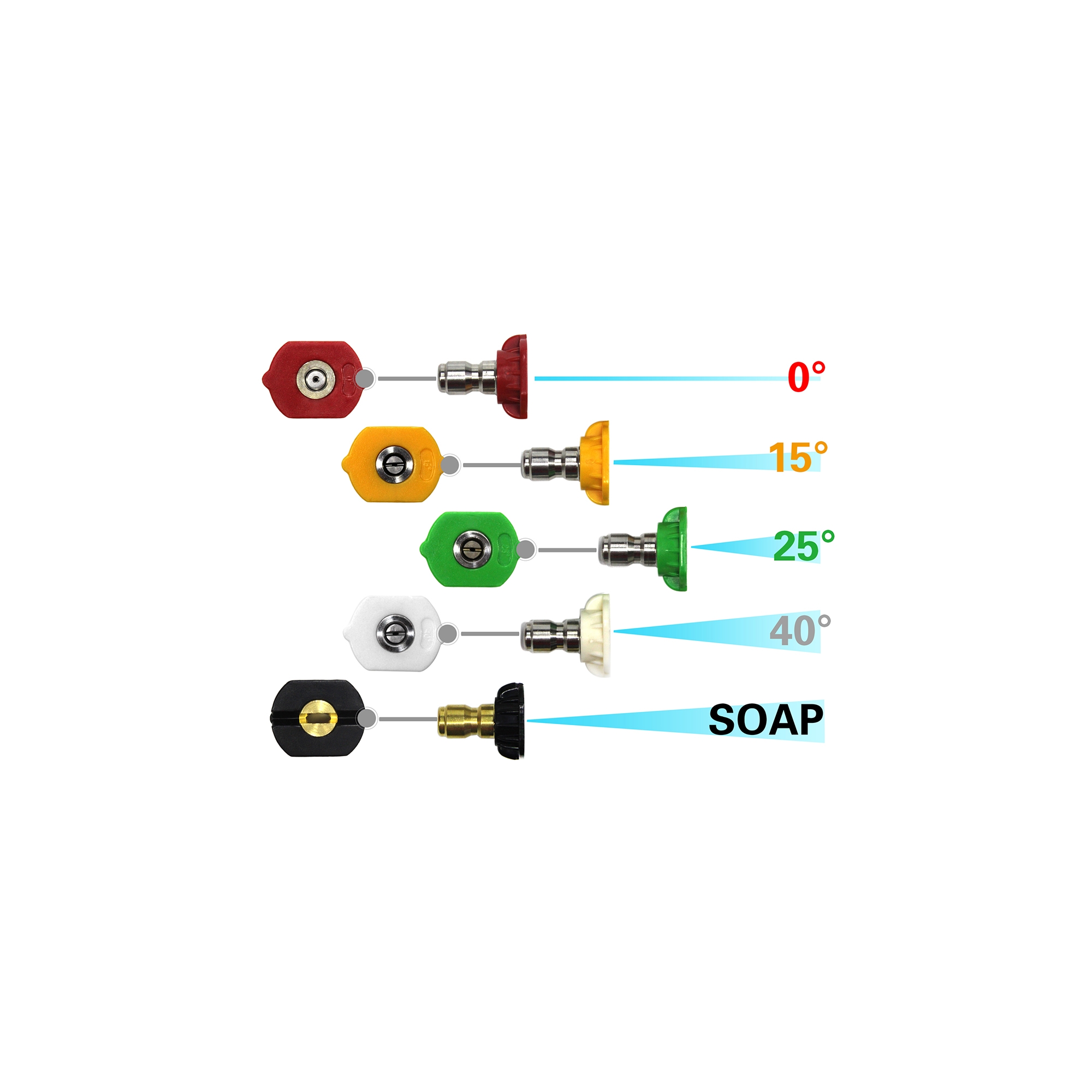 • Pięć końcówek: 0°, 15°, 25°, 40°, oraz dysza do piany (65°)